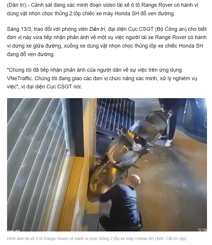 Cs vào cuộc tài xế Range Rover chọc thủng lốp xe máy SH