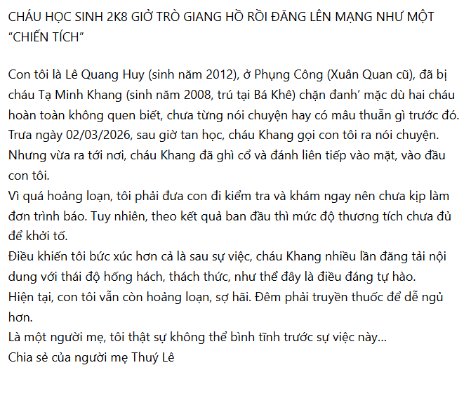 KHIẾP QUÁ Hưng Yên Thanh niên 2k8 tương tác e h/s lớp 8 mặc dù không quen biết