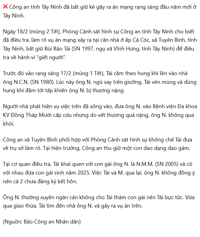 Vĩnh Hưng – Tây Ninh : con rể quý 🔪 bố vk tuvong ngày mùng 1 tết